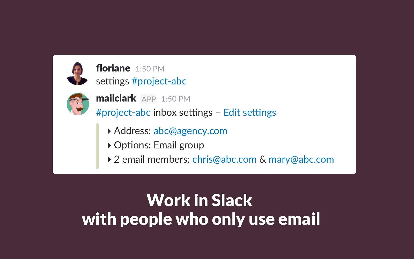 • Work in Slack with clients or colleagues who only use email or Twitter,