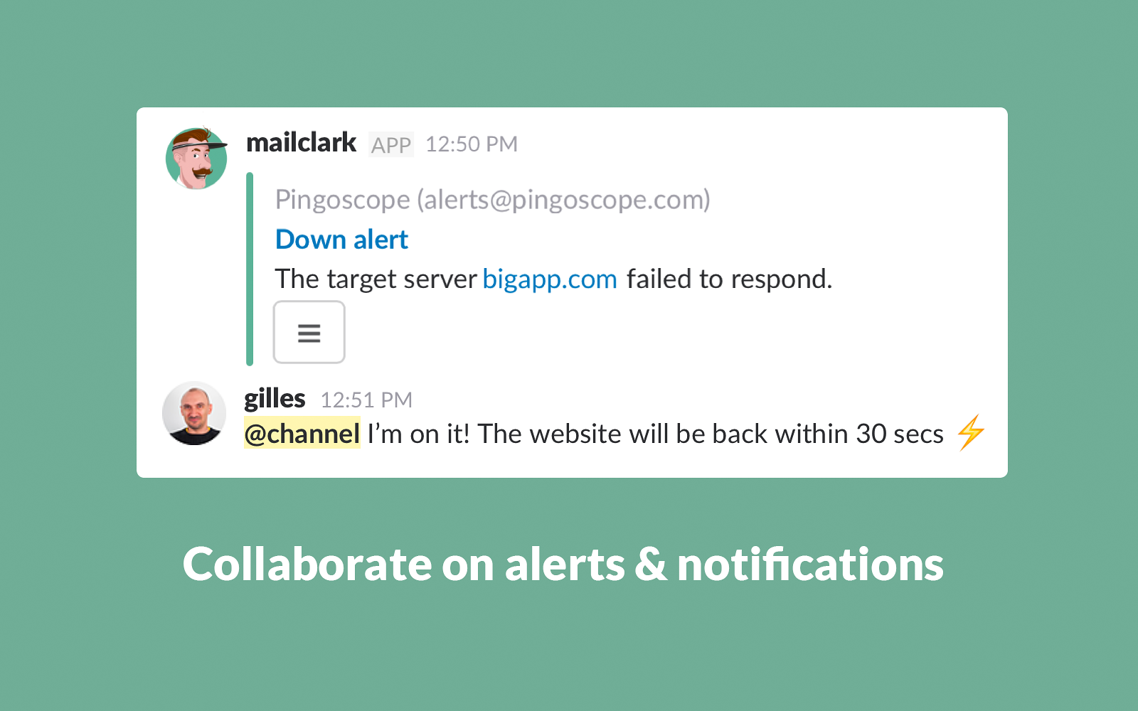 • Receive alerts, mentions or newsletters in a channel,
