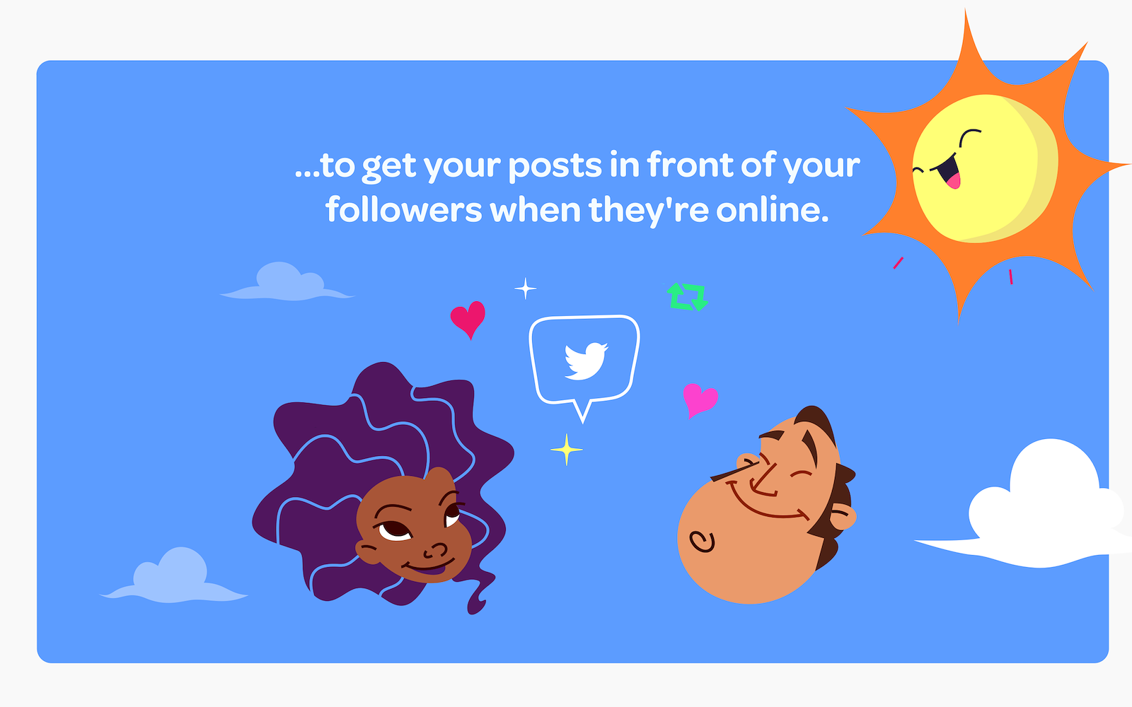 Post once, publish on Twitter, Facebook, and LinkedIn (Instagram coming soon), each with nuanced differences. Yala asynchronously deploys your post when she detects high engagement on your specific social network property. Yala then gets to work and deploys each post individually. ~ Perfect Timing Assisted by Machine Learning ~