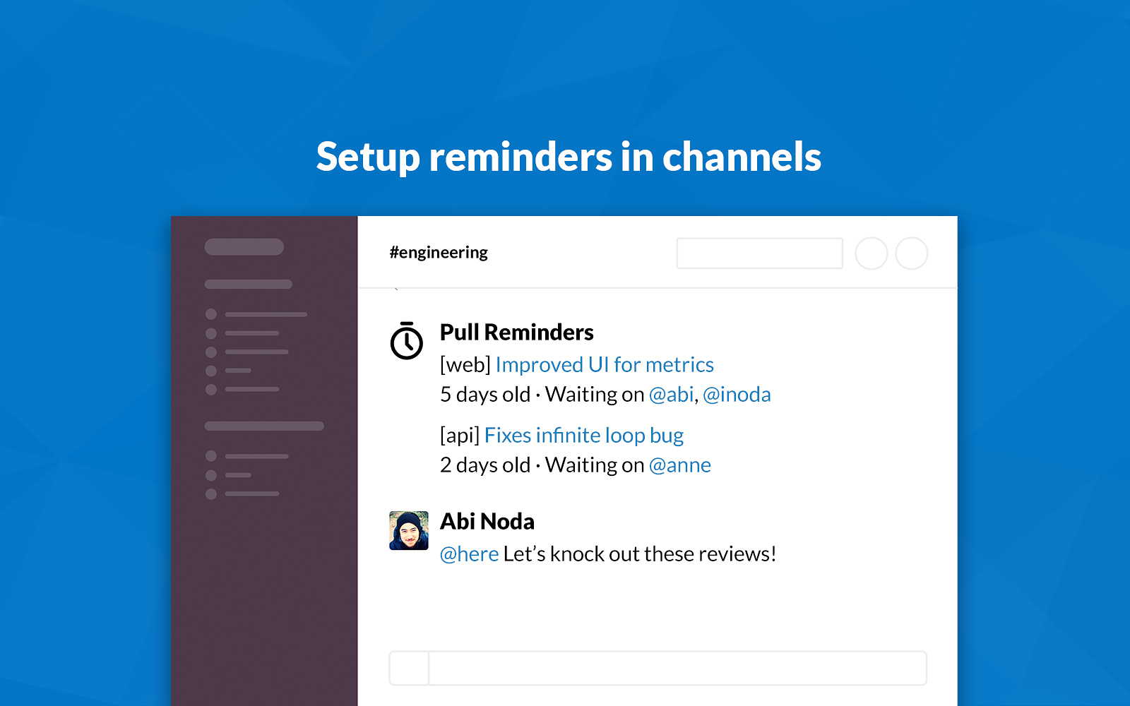 Pull Reminders for GitHub will be able to access basic information about your private channels (including names, topics, purposes, creation date, and latest message).