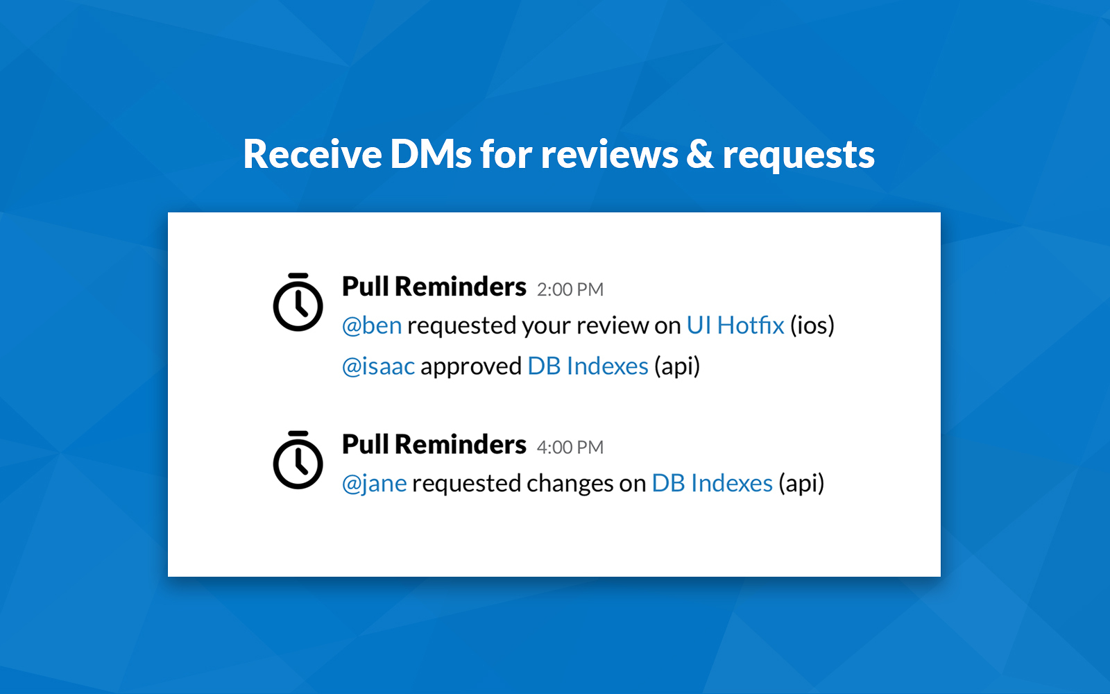 Pull Reminders for GitHub will be able to install a bot user that appears in and has access to your workspace’s directory. It can also post messages and view activity on messages in any channel it is invited to.