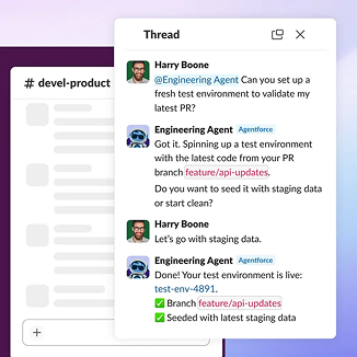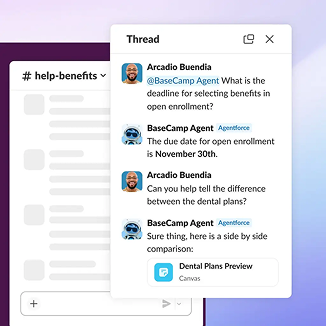 By bringing AI-powered agents into the flow of work alongside your people, Slack empowers every employee, giving them personalized digital teammates who can answer questions, resolve issues, and automate work across functions.