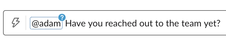 Mit Erwähnungen kannst du Leute direkt über etwas benachrichtigen, dass ihre Aufmerksamkeit in Slack erfordert. Erfahre, wie du Leute in deinen Nachrichten erwähnst und die Aktivität, in der du erwähnt wirst, anzeigst.