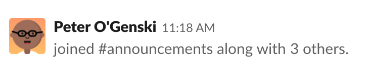 In Slack, messages are shown when someone joins, is added to or leaves a channel to let other members know who's coming and going. Workspace owners and workspace admins can manage these messages and choose to turn them off if they'd like.