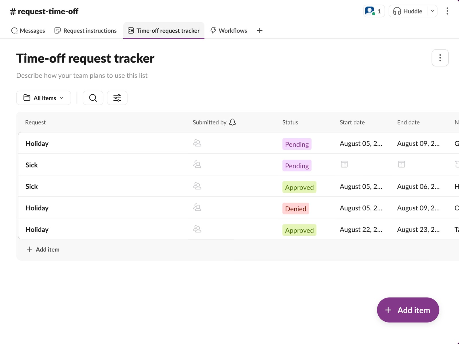 Here’s how to use this template to track annual leave requests in Slack: