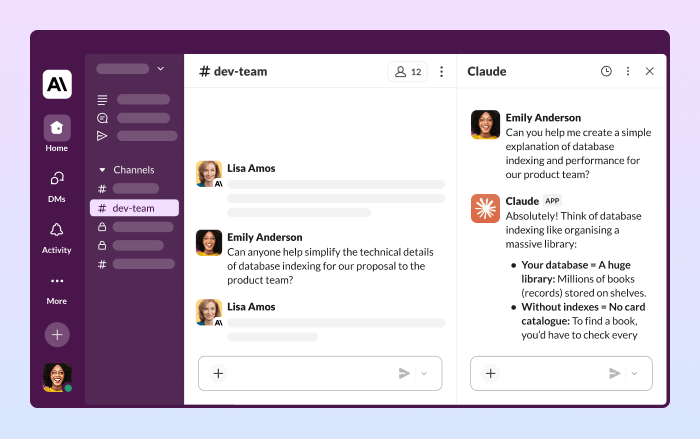 Anthropic’s Claude for Slack lets teams collaborate with Claude through direct messages or @mentions in channels, with access to web search, data connections and document analysis. By connecting Slack data to Claude, users can search across workspace channels, messages and files for deeper insights – bringing AI directly into their workflow.