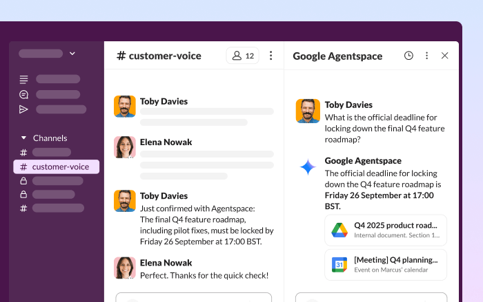 Google Agentspace integrates with Slack, enabling AI agents to access and analyse live workspace data for actionable insights.