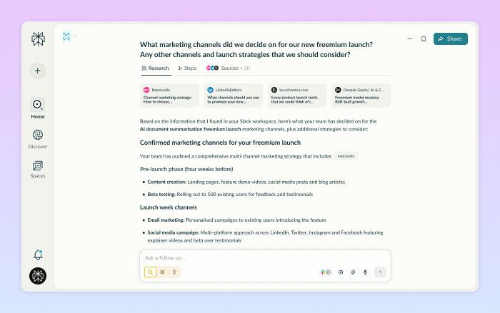 Perplexity provides real-time search and research capabilities directly in your Slack workspace.
