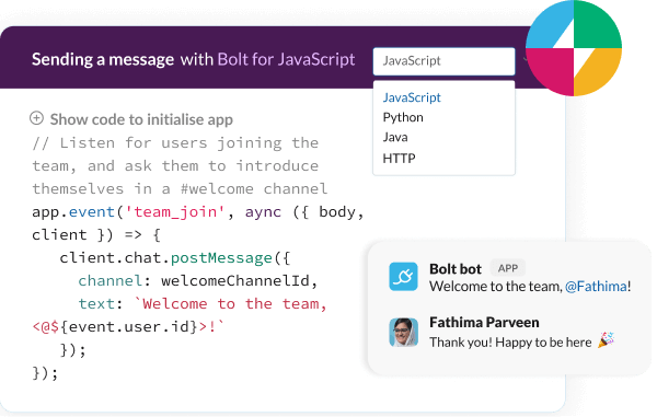The Slack platform simplifies the development process with the Slack CLI for lifecycle management and Bolt for application development. Developers can run backend services, connect via Heroku or build modular components, ensuring full customisation for however your organisation works best.