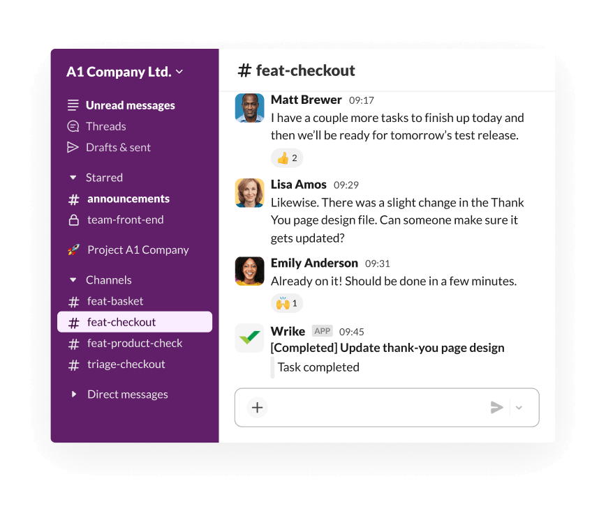 You can use Slack for all your task management needs. From task reminders to specific channels for project updates to seamless team collaboration, Slack helps you to never miss a task or deadline. Go further by integrating with thousands of tools, such as Asana, Wrike, Monday.com and many more to manage every task in Slack, your productivity platform.