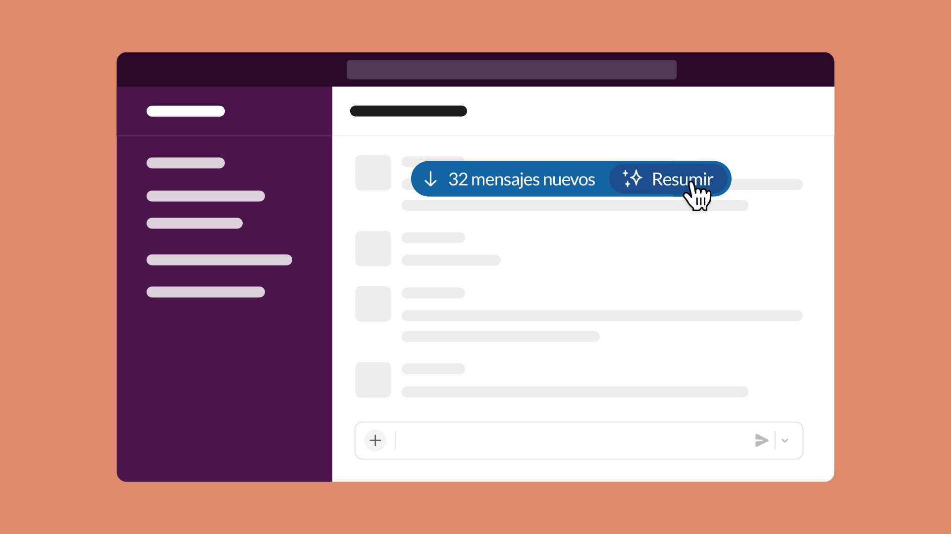 Imagina que cada vez que te unieses a un canal, ya sea para incorporarte a un proyecto ya empezado o para ponerte al día después de estar fuera de la oficina, pudieras consultar todos los mensajes no leídos en tan solo un clic. Próximamente, con la IA generativa integrada para la experiencia del usuario, los resúmenes de las conversaciones estarán al alcance de tu mano desde el momento en que te unas a un canal.