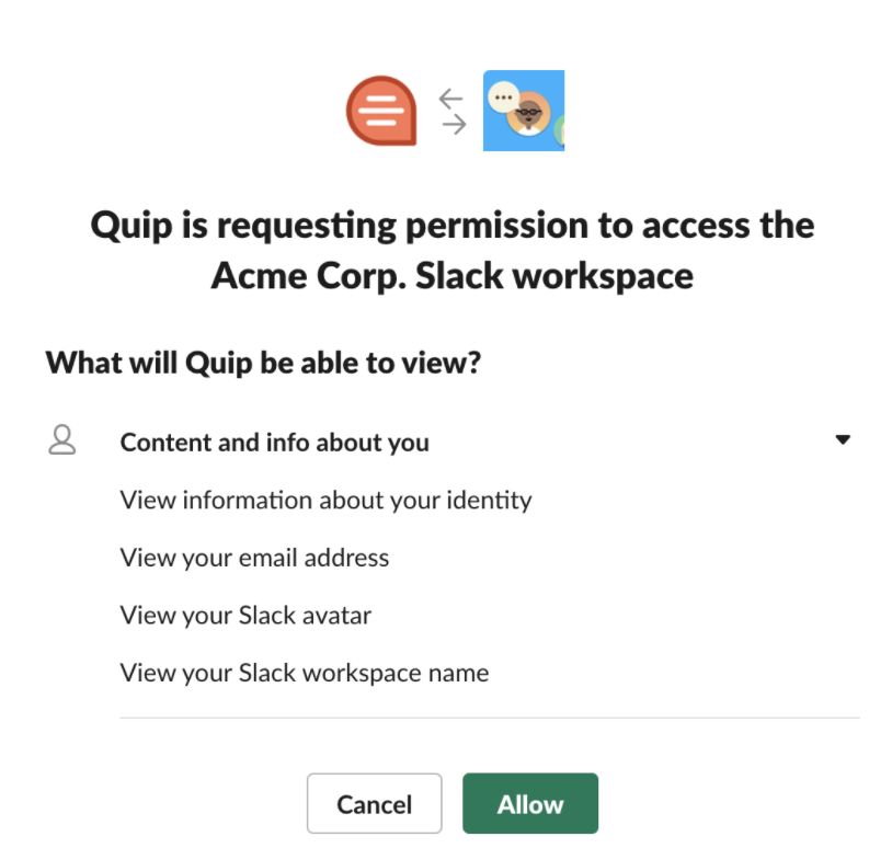 Haz clic en Permitir para que el servicio pueda acceder a Slack.
