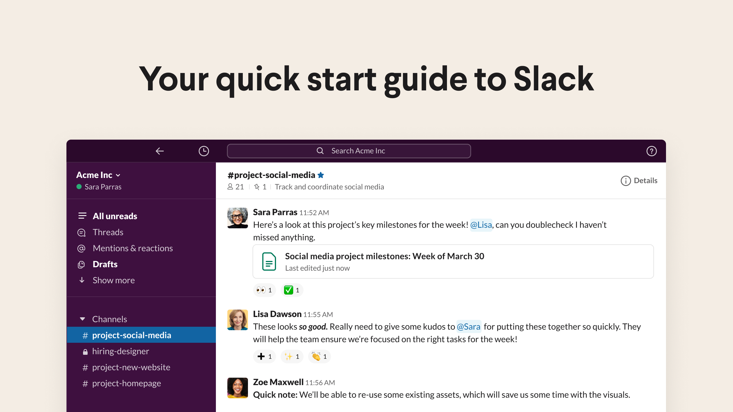Mettiamo a disposizione anche una serie di tutorial di Slack per aiutarti ad ambientarti e a iniziare a lavorare su Slack.