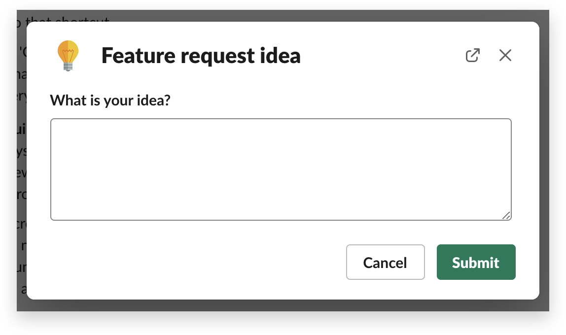 Proprio come un’idea per una nuova funzione, i nuovi bug possono essere individuati anche da clienti e colleghi. Per coloro che non hanno accesso o esperienza in Jira, come gli agenti dell’assistenza clienti o i responsabili del successo, il modo migliore per inviare segnalazioni di bug agli ingegneri è tramite Slack.