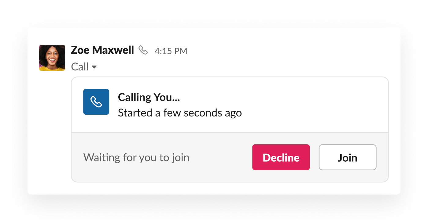 All Slack users can launch a call in a direct message with another person. If you’re on a paid plan, you can do the same in channels with up to 15 people.