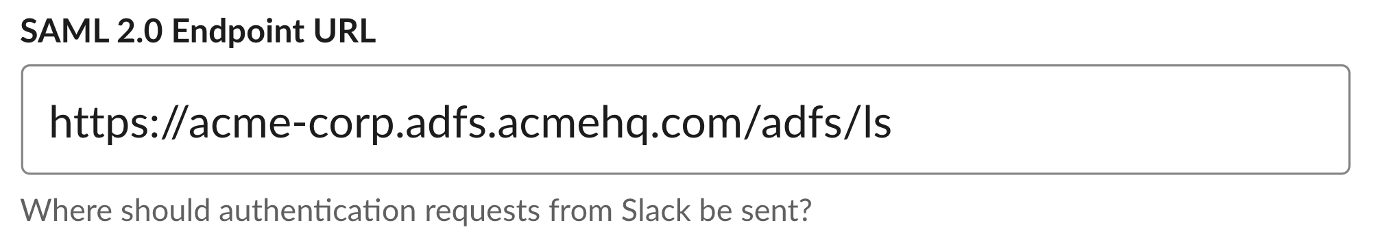 Successivamente, aggiungi i dettagli ADFS alle impostazioni di autenticazione dell’area di lavoro di Slack:
