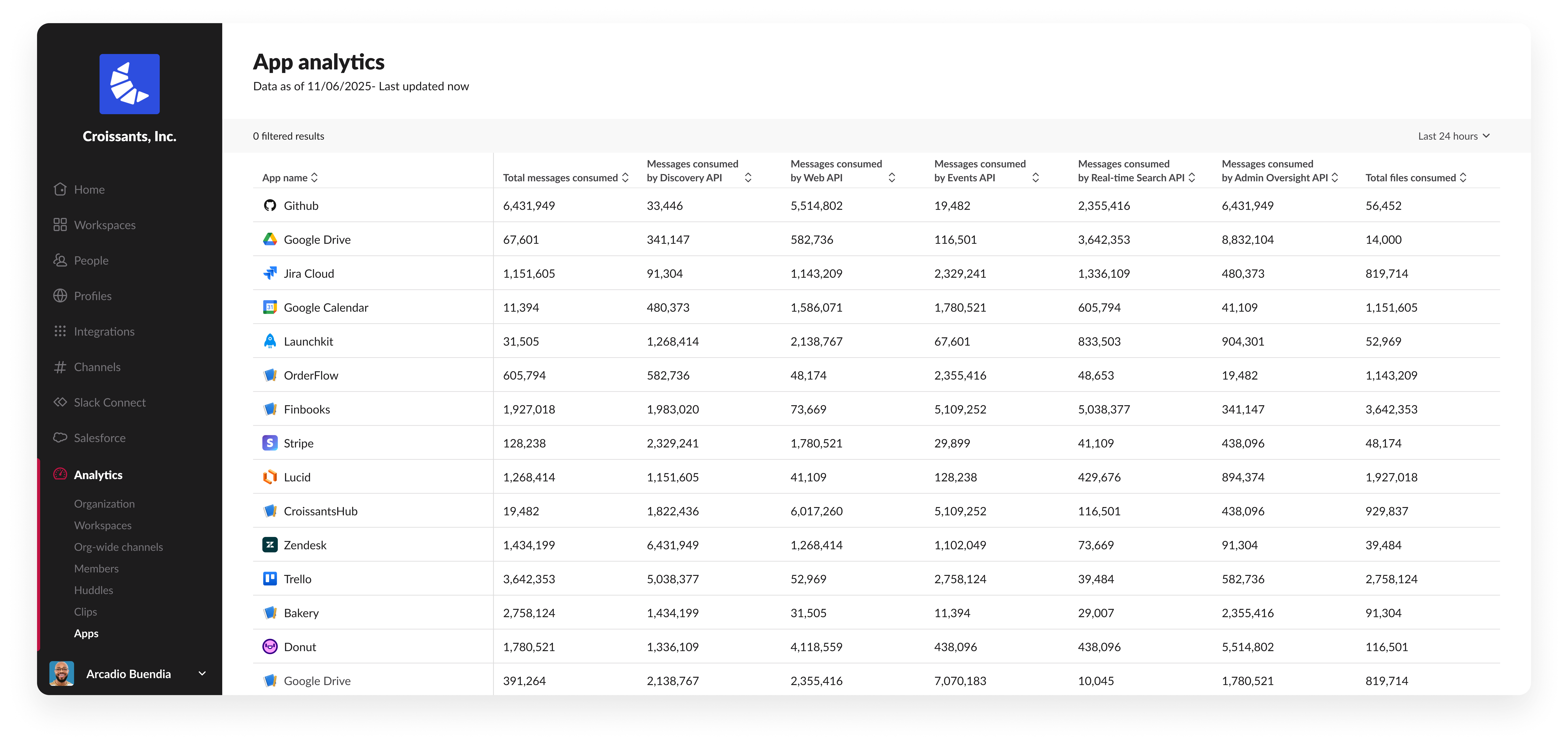 앱이 메시지와 파일을 어떻게 소비하는지, 실시간으로 인사이트를 얻어보세요. 새롭게 제공되는 ‘지난 24시간’ 보기 기능과 거의 즉각적으로 대응하는 쿼리 성능, 대규모 데이터 처리 기능 등을 통해 관리자는 앱 활동을 더욱 빠르게 파악할 수 있습니다.**** - 메시지 삭제 권한