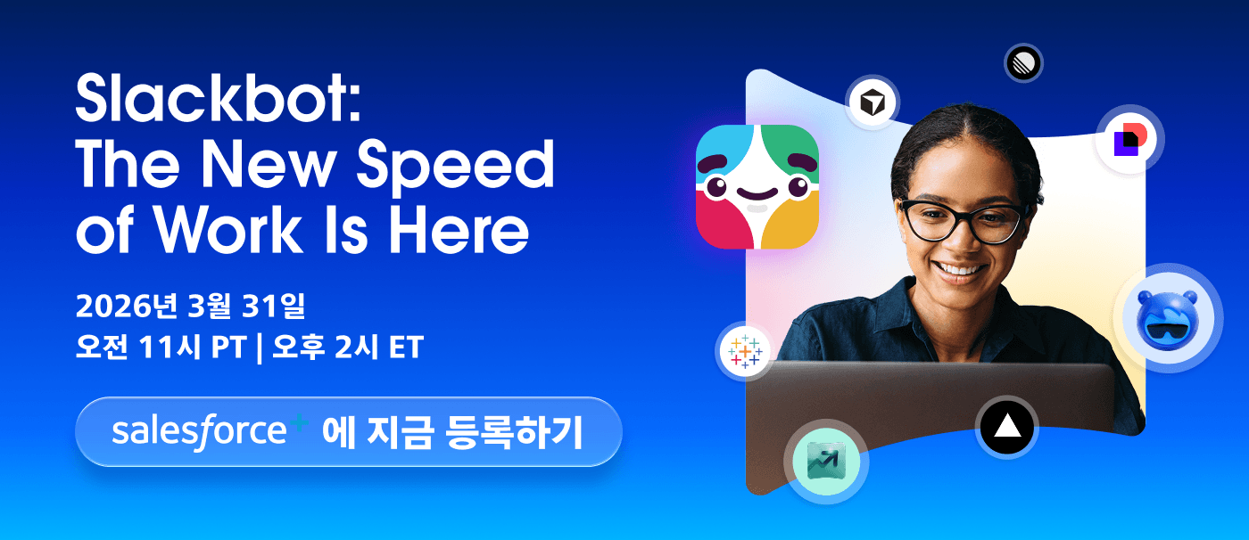Dreamforce에서 저희는 Slack에서 바로 사용 가능하여 AI를 일상 업무에 실질적으로 도입할 수 있는 새로운 혁신 기술 몇 가지를 소개했었습니다.