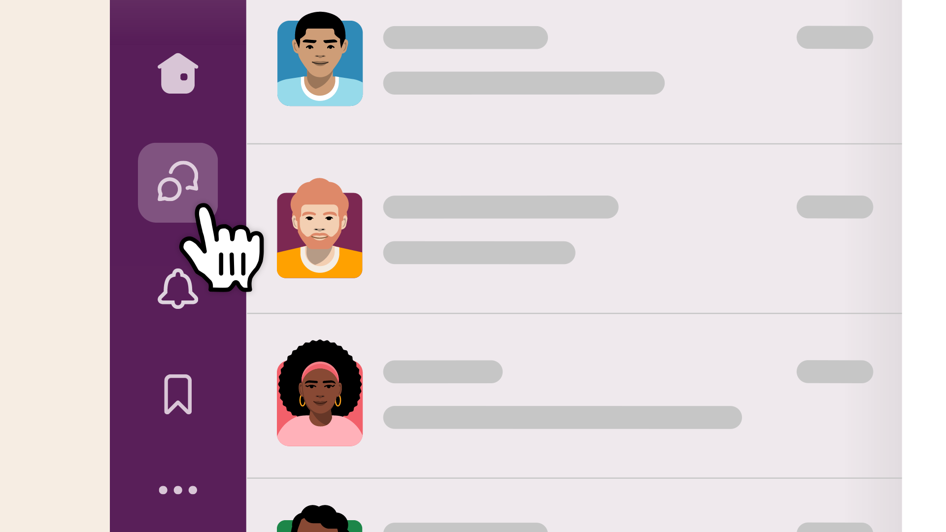 imagem de um cursor apontando para o ícone de MDs na barra lateral do app Slack para computadores