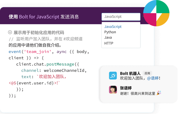 Slack 让每个人都能够轻松地通过单击或编写代码实现任务自动化。借助 AI 驱动的工作流程,你可以触发代理响应、更新记录等等。而且,如果你是一名开发人员,还可以完全自定义从后端服务到直接签入 Slack 的模块化组件的所有内容。