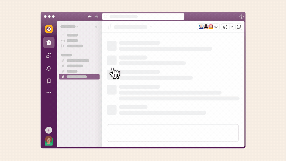 Slack 将对话整理到名为频道的专用空间中。向频道添加人员,以便将工作区中适当的人员和信息汇集在一起(对于公司外部人员,请了解如何使用 Slack Connect 邀请他们加入频道)。
