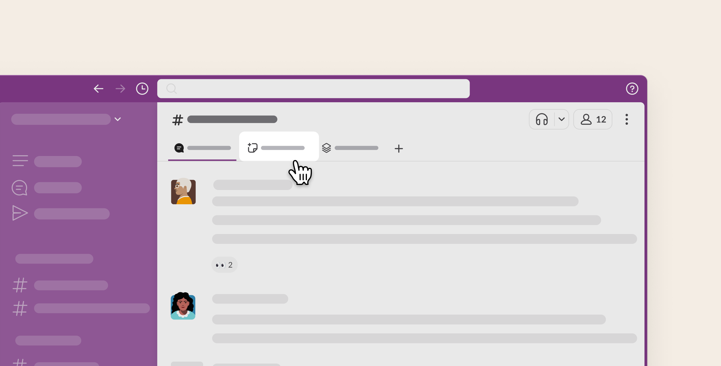 使用 Slack 免费版时,你可以为工作区中的每个频道或私信建立一个画板。