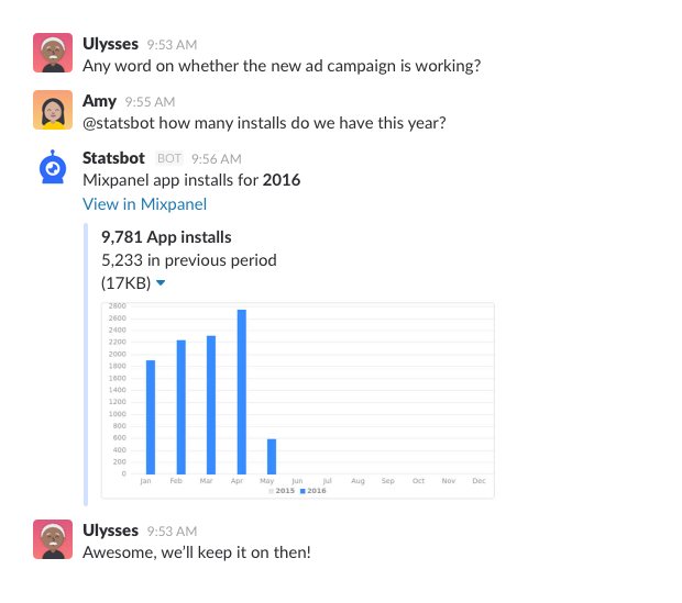 提高重要数据的可见性,并做出更高效、更明智的决策。将来自第三方工具的数据填充到你的 Slack 频道中,并得到应有的关注。